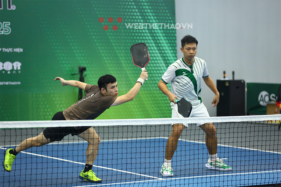 Trận chung kết hạng mục đôi nam Doanh Nhân - Nghệ sĩ của VTV A.O Smith Pickleball Open 2025 đã chứng kiến cuộc lội ngược dòng ngoạn mục của Anh Thắng - Phúc Anh.