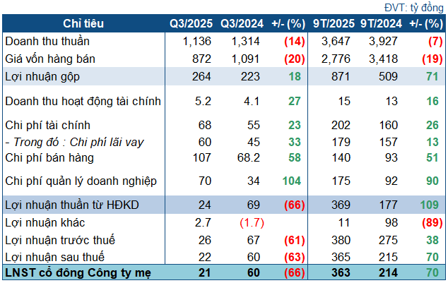 Các chỉ tiêu kinh doanh của BAF trong quý 3/2025