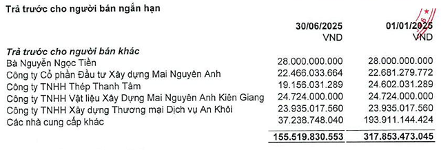 Khoản trả trước 28 tỷ đồng cho bà Nguyễn Ngọc Tiền treo nhiều năm trên BCTC của CKG. Nguồn: BCTC soát xét bán niên 2025 của CKG