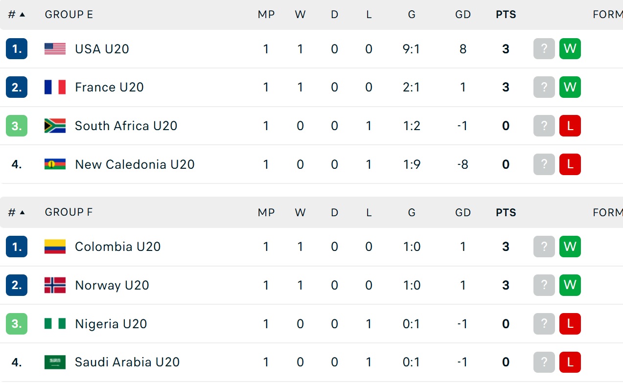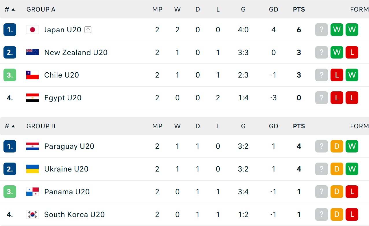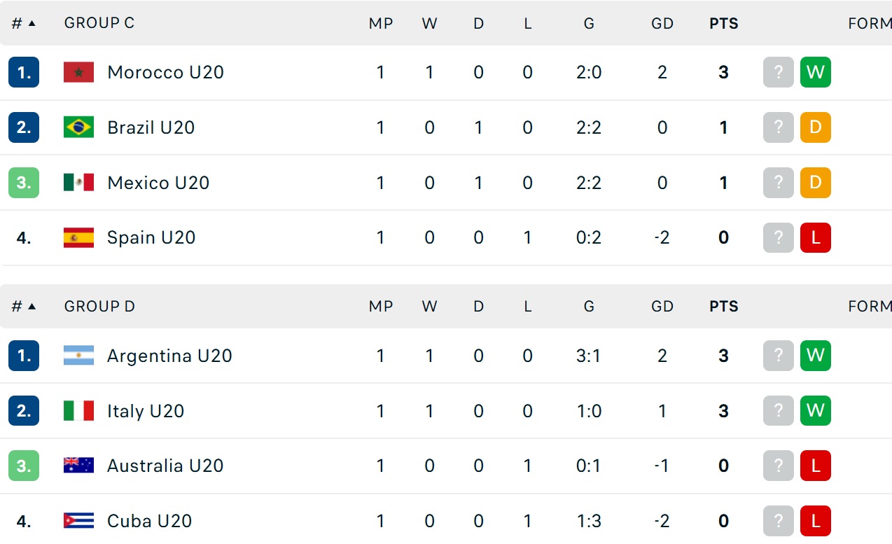 Cập nhật bảng xếp hạng giải bóng đá vô địch U20 thế giới 2025 có sự góp mặt của các đội tuyển Argentina, Brazil, Italia, Tây Ban Nha, Pháp...