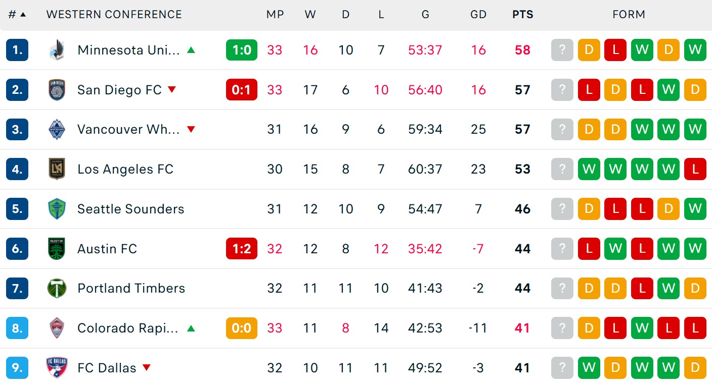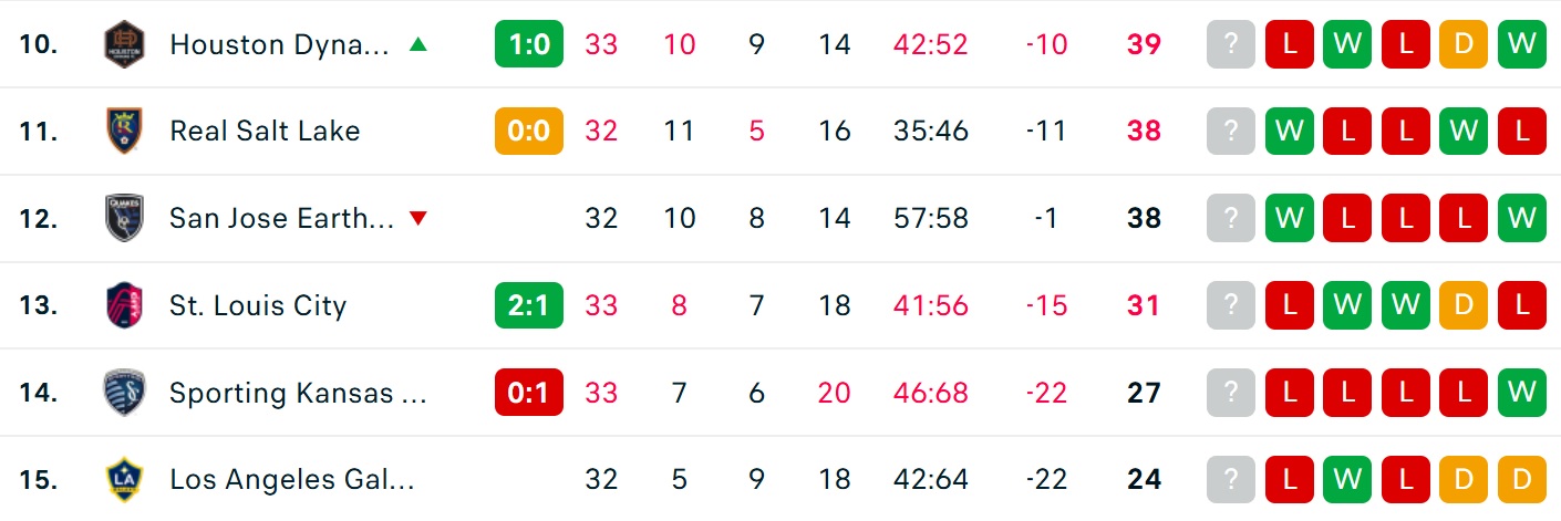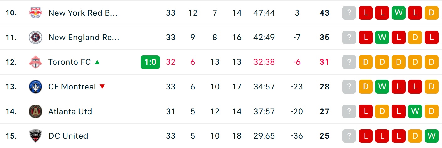 Bảng xếp hạng MLS 2025 mới nhất (tiếp tục cập nhật)