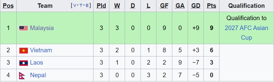 - Bảng xếp hạng vòng loại Asian Cup 2027
