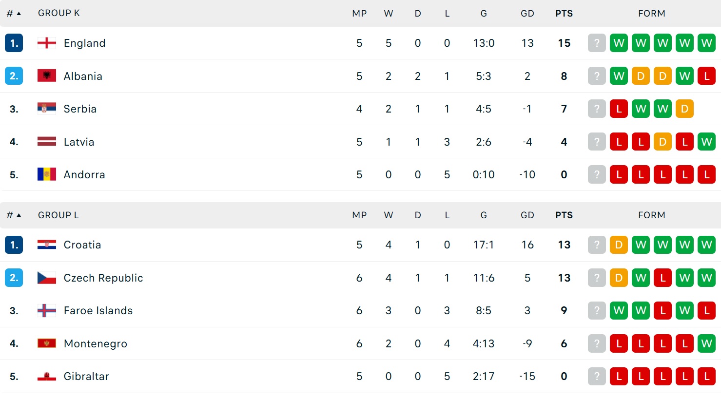 Bảng xếp hạng vòng loại World Cup 2026 khu vực châu Âu sau lượt trận ngày 10/10/2025. Cập nhật BXH vòng loại World Cup 2026 mới nhất.