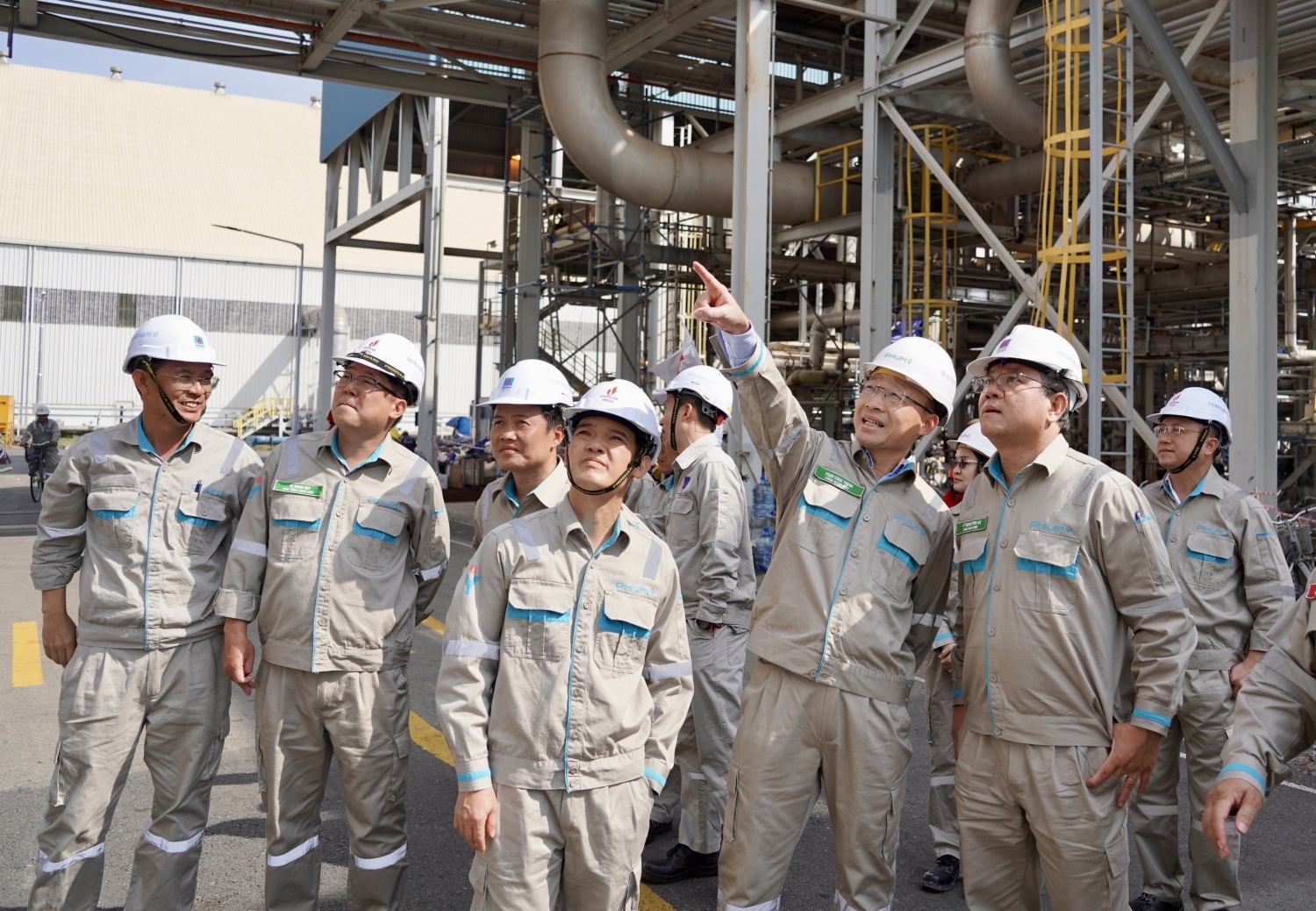 Công tác BDTT luôn được Ban lãnh đạo PVFCCo - Phú Mỹ quan tâm sát sao. (Ảnh: Đoàn công tác của Tổng công ty, do ông Nguyễn Xuân Hòa - Chủ tịch HĐQT PVFCCo - Phú Mỹ dẫn đầu, kiểm tra tại công trường BDTT Nhà máy Đạm Phú Mỹ).