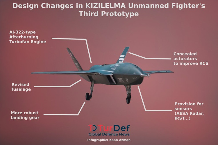 Bayraktar Kizilelma là máy bay chiến đấu không người lái có thể hoạt động độc lập hoặc kết hợp với tiêm kích KAAN thế hệ thứ năm của Thổ Nhĩ Kỳ.