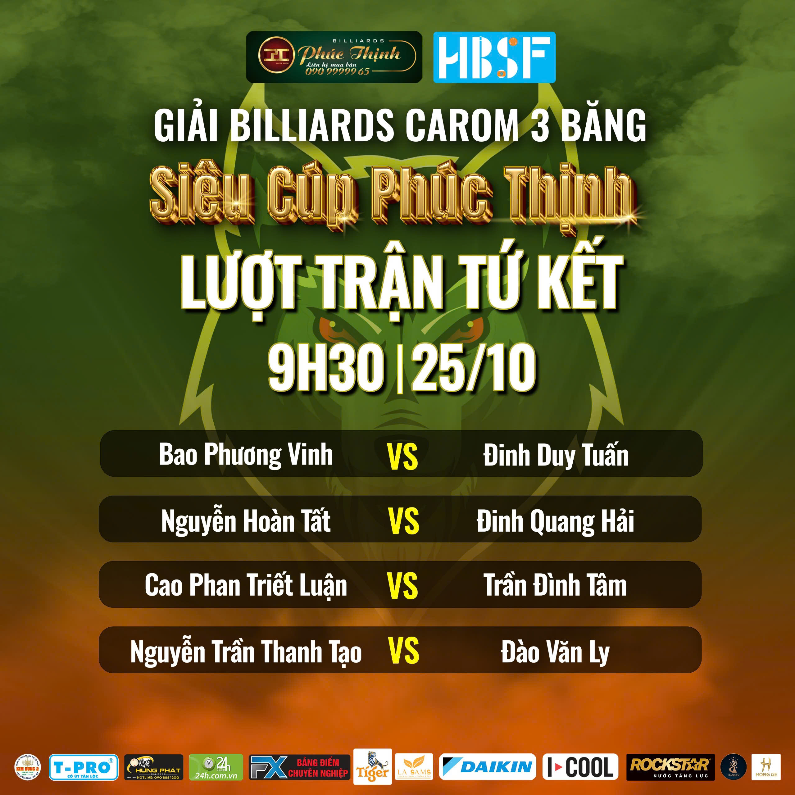 Ngày thi đấu 24/10 tại giải Billiards Carom 3 băng Cúp Phúc Thịnh 2025 (Siêu Cúp Phúc Thịnh) đã trở thành tâm điểm chú ý với sự góp mặt của hàng loạt hảo thủ. Tuy nhiên, mọi ánh mắt đều đổ dồn vào màn so tài căng thẳng giữa cựu vô địch World Championship Bao Phương Vinh và lão tướng Nguyễn Nhất Hòa tại vòng loại trực tiếp.