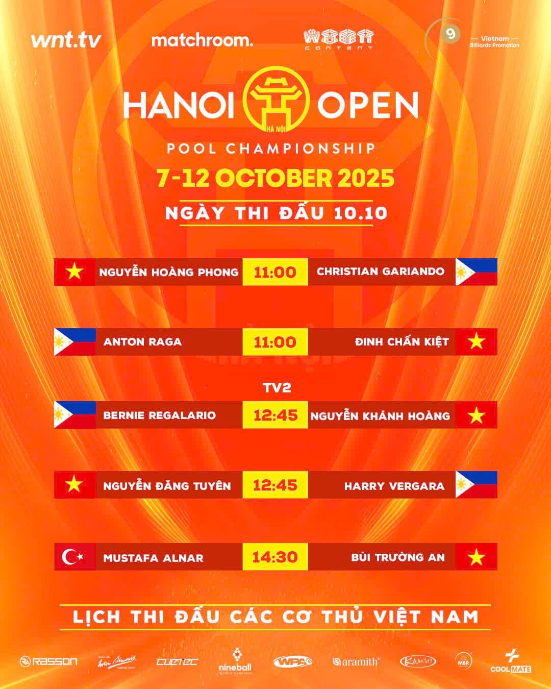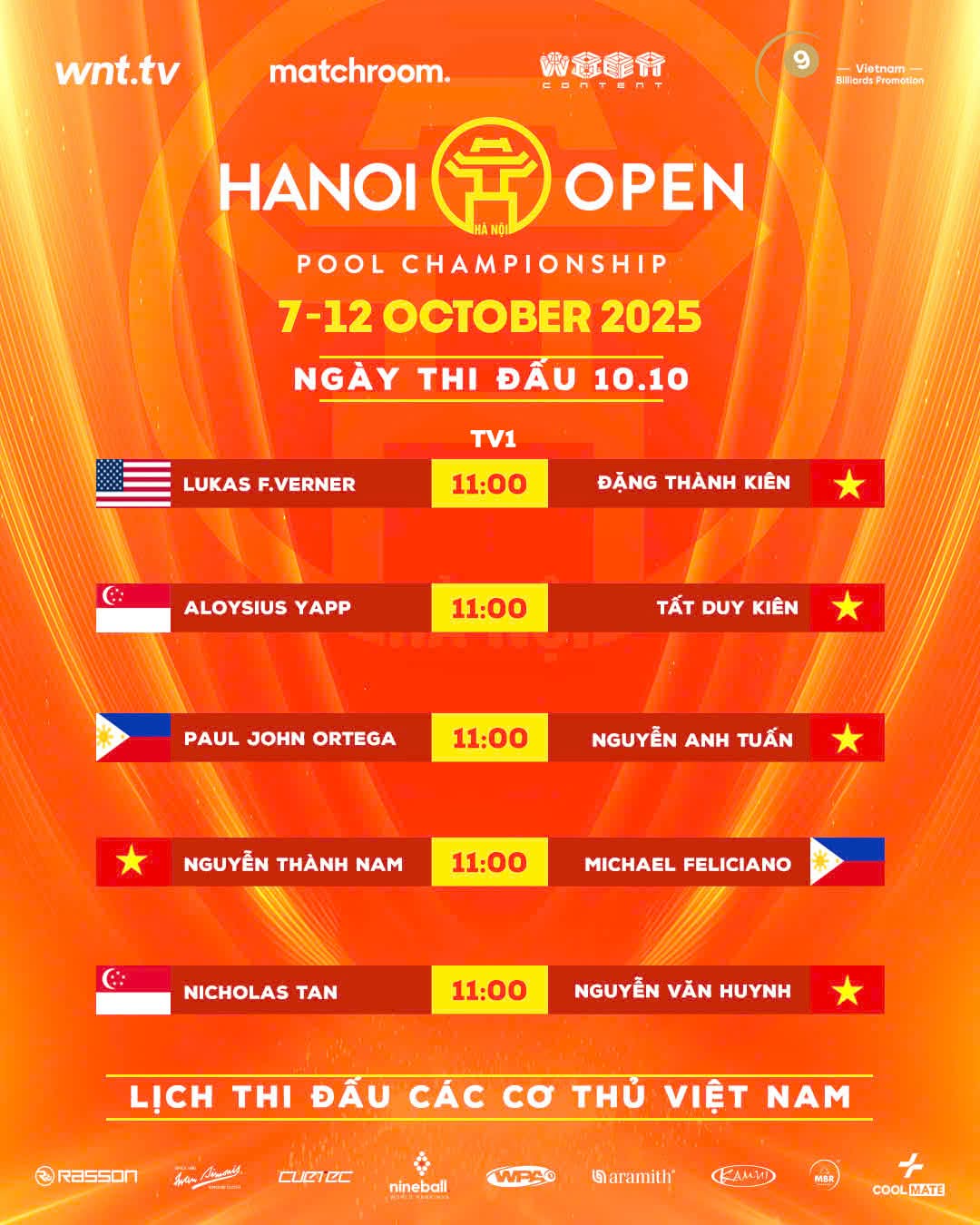 Cập nhật lịch thi đấu, cặp đấu vòng Last 64 và Last 32 Hanoi Open Pool 2025 ngày 10/10.