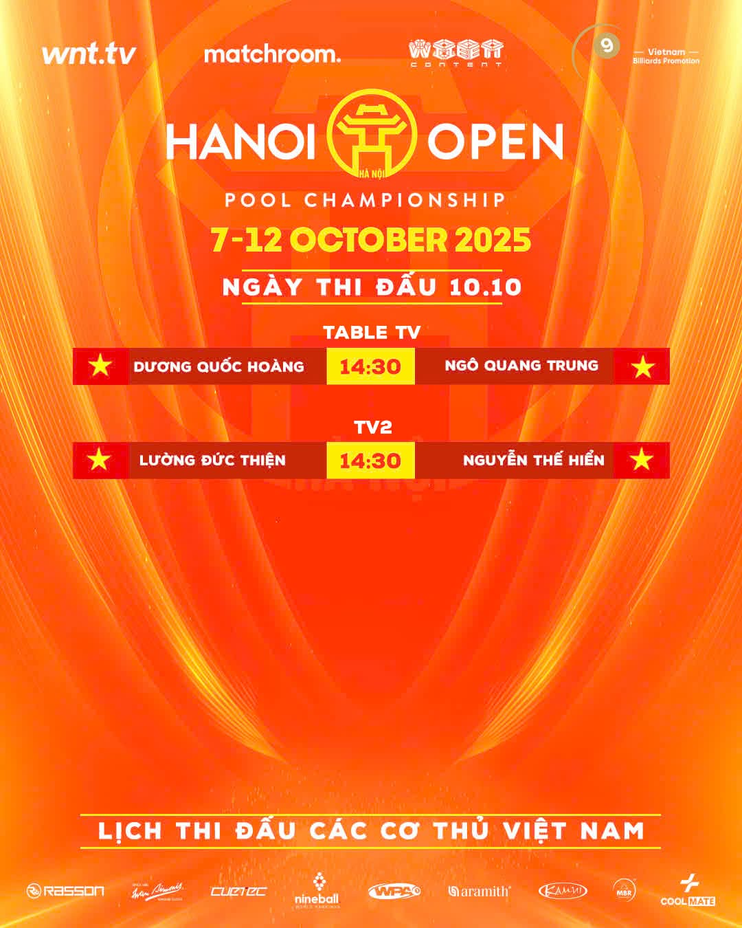 Danh sách kênh và đối tác phát sóng trực tiếp Hanoi Open Pool 2025