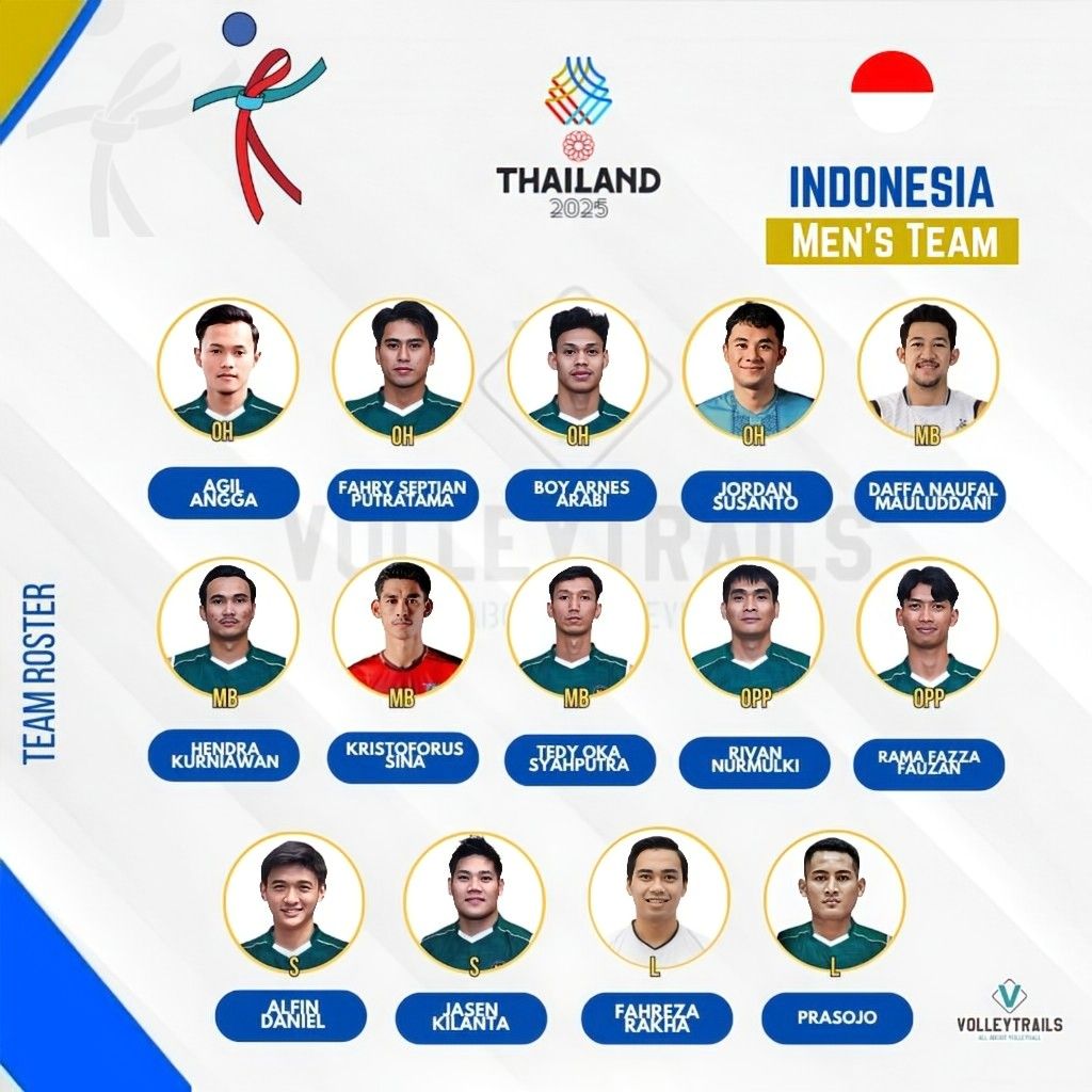 Đội tuyển bóng chuyền nam Indonesia đã chính thức công bố danh sách lực lượng mạnh nhất tham dự SEA Games 33, với mục tiêu không gì khác ngoài tấm HCV thứ 4 liên tiếp.