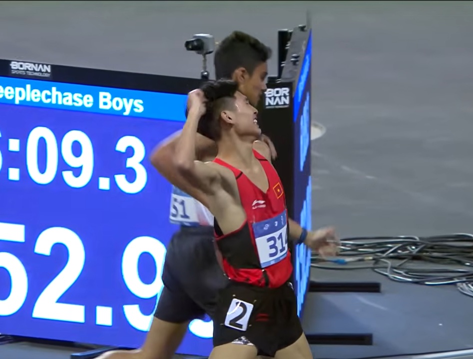 Đại diện cuối cùng của điền kinh Việt Nam, VĐV Bùi Tuấn Tú vừa khép lại cuộc đua chạy 2000m vượt chướng ngại vật với màn bứt tốc khó tin giành HCB Đại hội Thể thao Trẻ châu Á.