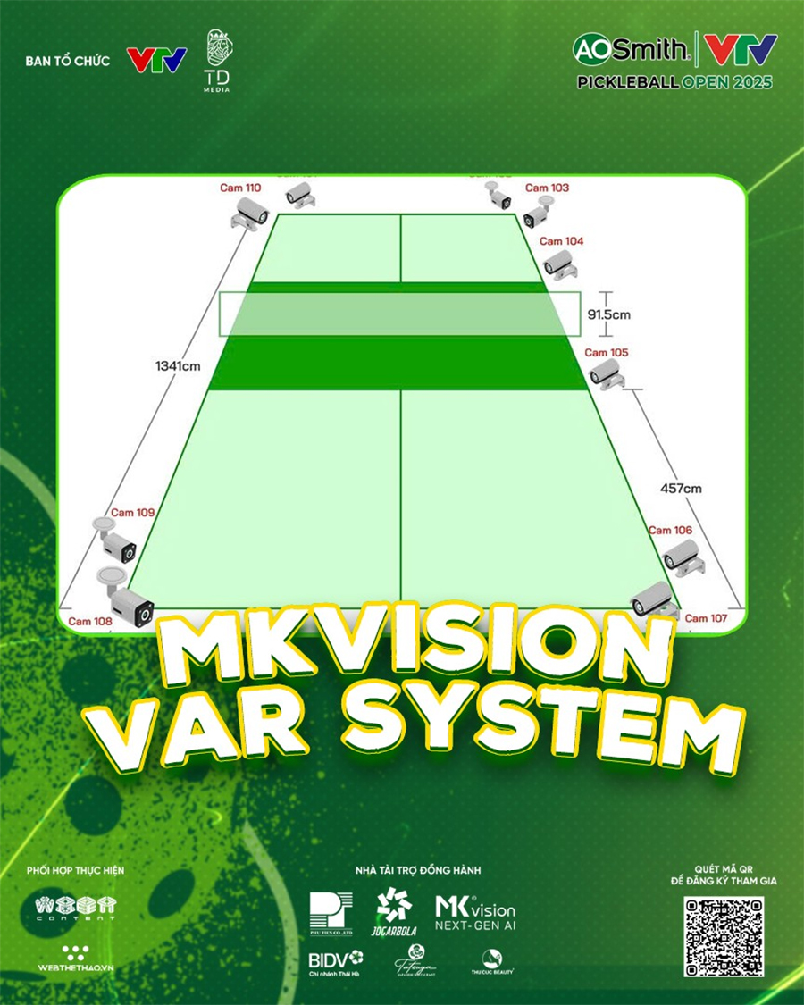 Đối mặt với thách thức này, công ty công nghệ MK Vision đã phát triển thành công hệ thống Instant Replay System (IRS) - phiên bản "VAR" đặc biệt dành riêng cho Pickleball, được thiết kế và sản xuất 100% bởi đội ngũ kỹ sư Việt Nam. Công nghệ này sẽ được triển khai lần đầu tiên tại VTV A.O SMITH Pickleball Open 2025.