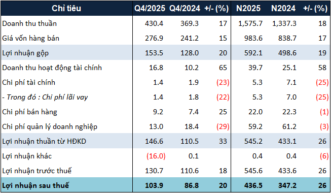 Theo đó, PDN lãi sau thuế gần 104 tỷ đồng trong quý 4/2025, tăng 20% so với cùng kỳ.