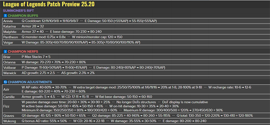 Chi tiết bản cập nhật LMHT 15.20