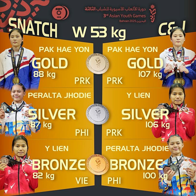 Cử tạ Việt Nam vừa khép lại hành trình thành công với bộ huy chương đầy đủ vàng bạc đồng ở Đại hội Thể thao Trẻ châu Á 2025 ở Bahrain tối nay.