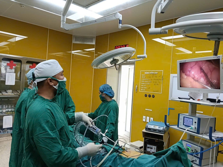 Ca mổ kéo dài hơn 2 giờ, do Th.S-BSCKII Vũ Quang Trung – Giám đốc Bệnh viện, BSCKI Nguyễn Văn Bình – Phụ trách Khoa Ngoại cùng BSCKI Phạm Ngọc Cảnh – Gây mê hồi sức trực tiếp thực hiện.