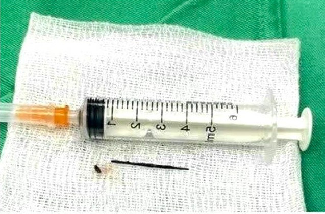 Theo bác sĩ, đây là tình huống hiếm gặp và cực kỳ nguy hiểm, có thể đe dọa trực tiếp đến tính mạng người bệnh nếu không được phát hiện và can thiệp kịp thời. Đặc biệt, dị vật kim loại nếu không lấy ra có thể di chuyển đến cơ quan khác để gây biến chứng.