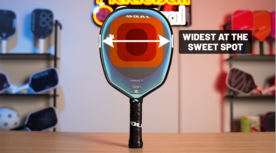 Avoura thiết kế phần rộng nhất của mặt vợt trùng với “đường xích đạo” sweet spot, kết hợp cùng hệ thống phân bổ trọng lượng bên trong, giúp tăng độ ổn định và độ forgiving.