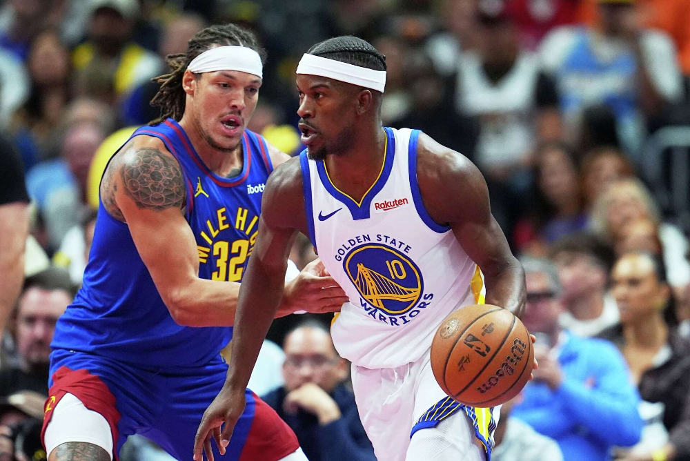 Vắng Stephen Curry khi đối đầu Denver, Jimmy Butler (áo trắng) đã không thể dẫn dắt Warriors đến chiến thắng