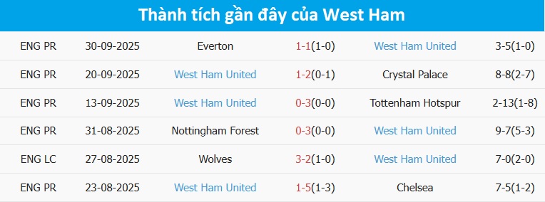 Tổng bàn thắng cả trận: 7/9 trận gần đây của Arsenal không vượt mốc tổng bàn thắng. Điều tương tự cũng xảy ra ở trận mới nhất của West Ham.