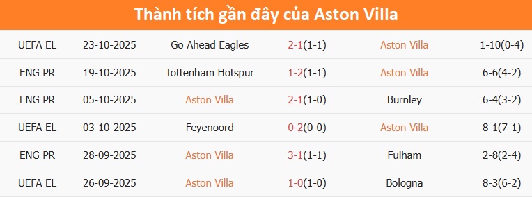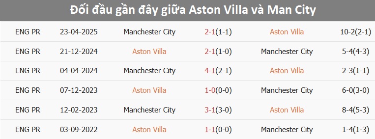 Tỷ lệ trận đấu: Aston Villa thua Man City 3/5 cuộc đối đầu trước đó theo tỷ số châu Á. Aston Villa cũng thua trận mới nhất. Phía bên kia, Man City toàn thắng 3 trận vừa qua, xa hơn là 7/9 trận.