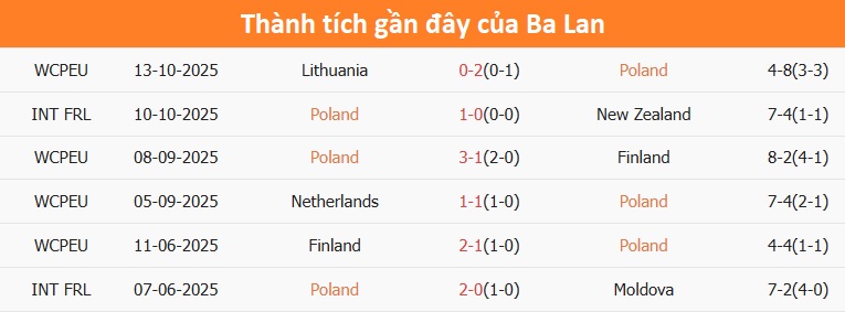 Tỷ lệ trận đấu: Ba Lan thua Hà Lan 5/7 cuộc đối đầu trước đó theo tỷ số châu Á. Ba Lan thắng 5/7 trận gần đây, trong khi Hà Lan cũng thắng 5/7 trận mới nhất.