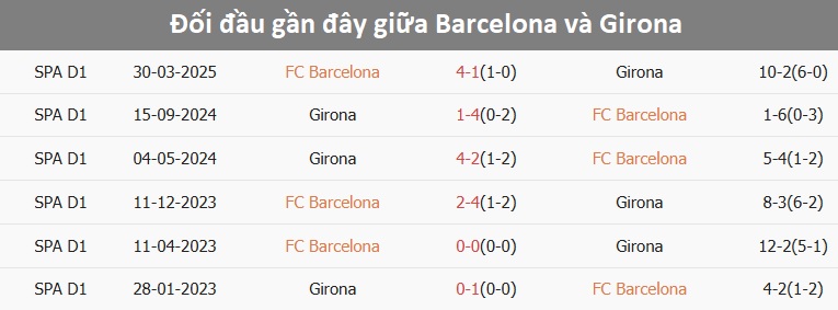 Tỷ lệ trận đấu: Barcelona toàn thua 3 trận gần đây theo tỷ số châu Á. Về phần mình, Girona trải qua 3 trận liên tiếp không thua (thắng 2, hoà 1).