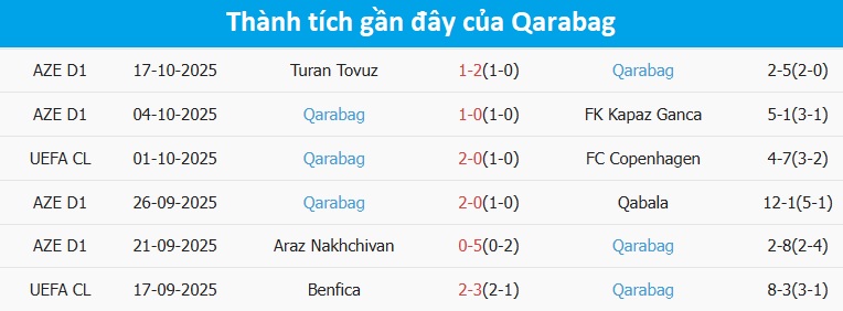 Tỷ lệ trận đấu: Bilbao thua 7 và hoà 2 trong 9 trận gần đây theo tỷ số châu Á. Về phần mình, Qarabag thắng 4/6 trận mới nhất, chỉ thua 1.