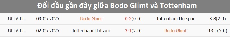 Tỷ lệ trận đấu: Bodo Glimt thắng 3/4 trận gần đây và chỉ thua 2/8 trận trước đó theo tỷ số châu Á. Về phần mình, Tottenham vừa thua trận mới nhất.