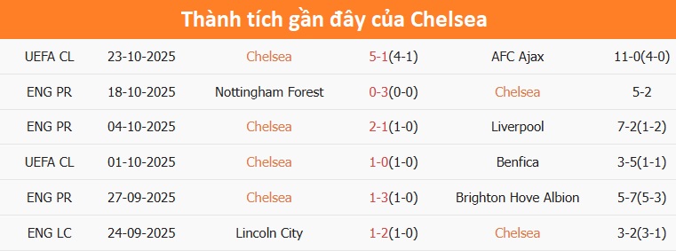 Chelsea đang trong giai đoạn thăng hoa với thành tích toàn thắng 4 trận gần đây ở cả hai đấu trường. Điều đáng nói, The Blues đạt hiệu quả rất cao về tấn công, ghi tới 11 bàn, trong đó vừa có màn huỷ diệt Ajax ở Champions League. Với phong độ này cũng như chất lượng chiều sâu đội hình, Chelsea sẽ hướng tới một chiến thắng khác khi tiếp đón đội bóng mới lên hạng Sunderland.
