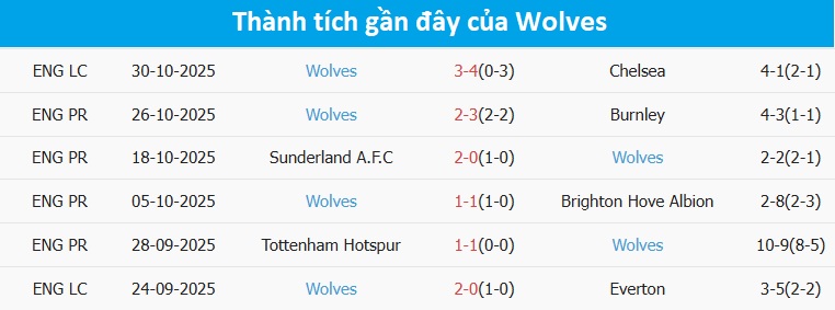 Với vỏn vẹn 2 điểm sau 9 vòng đấu, thua tới 7, Wolves đã chìm trong khó khăn mà không có dấu hiệu tích cực nào để hy vọng xoay chuyển tình thế. Ngay cả trận đấu kiên cường thua Chelsea 3-4 ở Carabao Cup mới đây cũng chỉ cho thấy sự yếu kém của “Bầy sói”, khi bất kỳ đối thủ nào cũng có thể khai thác hàng thủ tệ hại của họ, với 9 bàn thua trong 3 trận gần đây.