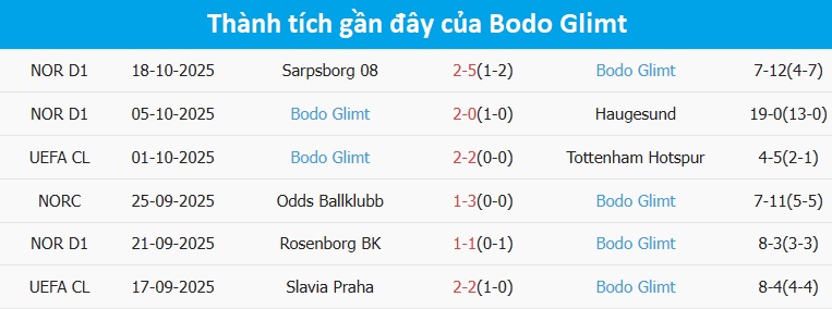 Tỷ lệ trận đấu: Galatasaray chỉ thắng 1/6 trận gần đây theo tỷ số châu Á. Về phần mình, Bodo Glimt thắng 5/7 trận mới nhất, gồm cả 2 ở Champions League.