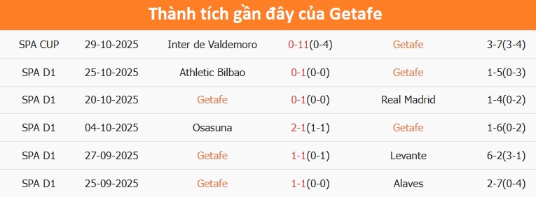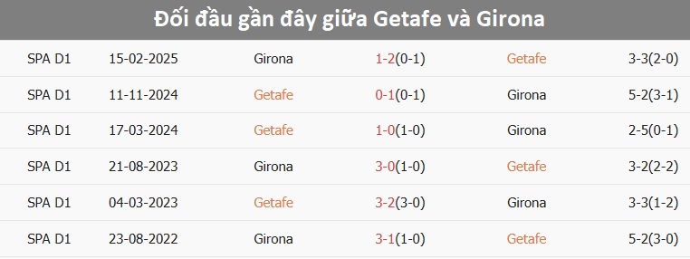 Tỷ lệ trận đấu: Getafe thắng Girona 2/3 cuộc đối đầu mới nhất theo tỷ số châu Á. Getafe cũng thắng cả 2 trận vừa qua. Ngược lại, Girona thua cả 2 trận gần đây.