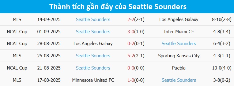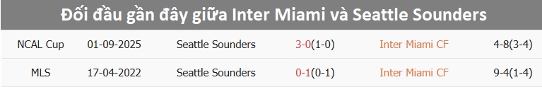 Tỷ lệ trận đấu: Inter Miami thua 3/4 trận gần đây theo tỷ số châu Á. Về phần mình, Seattle Sounders thắng 3/4 trận mới nhất.
