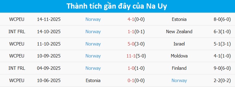 Tỷ lệ trận đấu: Italia thua 7/10 trận gần đây theo tỷ số châu Á nhưng thắng cả 2 trận mới nhất trên sân nhà. Về phần mình, Na Uy thua 4/6 trận vừa qua.