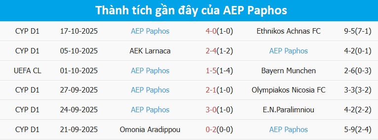 Tổng bàn thắng cả trận: 4/5 trận gần đây của Kairat Almaty vượt mốc tổng bàn thắng, tương tự là 3/4 trận mới nhất của AEP Paphos.