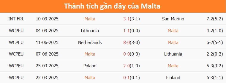 Tỷ lệ trận đấu: Malta thua 4/7 trận gần đây theo tỷ số châu Á, chỉ thắng 2. Về phần mình, Hà Lan thắng 3 thua 2 trong 5 trận vừa qua.
