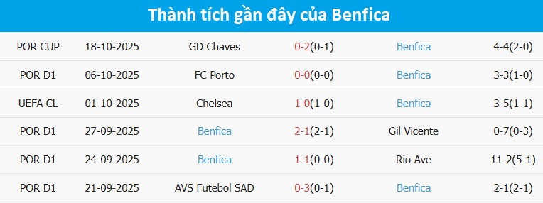 Tổng bàn thắng cả trận: 8/10 trận gần đây của Benfica dưới mốc tổng bàn thắng, giữ sạch lưới 2 trận mới nhất.