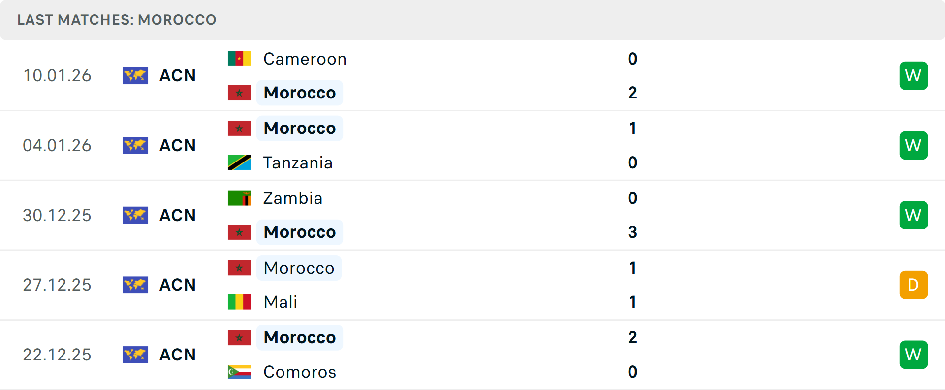 Phía đối diện, chủ nhà Ma rốc lại sở hữu sự lỳ lợm đáng nể với hàng thủ mới chỉ để lọt lưới đúng 1 bàn từ đầu giải. "Sư tử Atlas" dưới sự dẫn dắt của Walid Regragui chơi thực dụng, kỷ luật và cực kỳ nguy hiểm trong các tình huống chuyển trạng thái, nơi Brahim Diaz đang có phong độ ghi bàn ấn tượng.