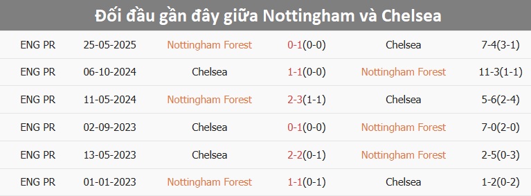 Tỷ lệ trận đấu: Nottingham thua 7/8 trận gần đây theo tỷ số châu Á. Về phần mình, Chelsea thắng 1 và hoà 1 trong 2 trận mới nhất.