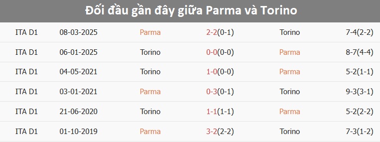 Tỷ lệ trận đấu: Parma trải qua 3 trận liên tiếp không thắng theo tỷ số châu Á, thua 2 trong số này. Phía bên kia, Torino thắng 3/4 trận gần đây.