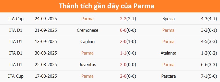 Mặc dù đã giành được 2 điểm nhưng cho đến nay Parma vẫn chưa biết đến chiến thắng tại Serie A mùa này. Mới đây nhất, họ chỉ vượt qua Pisa ở Coppa nhờ loạt luân lưu sau tỷ số hoà 2-2 trên sân nhà. Kết quả này cũng phản ánh chính xác thực lực và phong độ của Parma từ đầu mùa, điều khiến đội chủ nhà khó tạo ra nhiều khác biệt khi tiếp đón Torino. Cần biết rằng Parma mới chỉ ghi 1 bàn sau 4 trận tại Serie A.