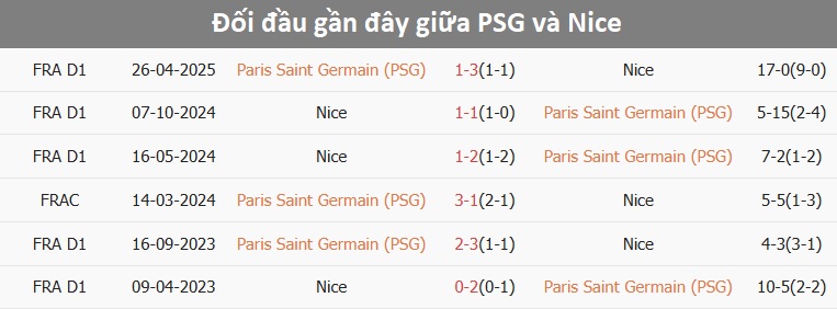 Tỷ lệ trận đấu: PSG thua Nice 7/10 cuộc đối đầu trước đó theo tỷ số châu Á, gồm 2 trận mới nhất. PSG cũng thua 5/8 trận gần đây. Về phần mình, Nice thắng 4/5 trận mới nhất.