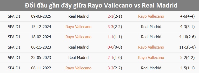 Tỷ lệ trận đấu: Rayo Vallecano thắng Real Madrid 9/10 cuộc đối đầu trước đó theo tỷ số châu Á. Rayo Vallecano cũng thắng 3/4 trận mới nhất ở La Liga. Phía bên kia, Real Madrid chỉ thắng 2/5 trận mới nhất.