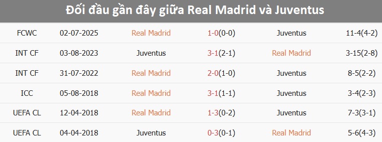 Tỷ lệ trận đấu: Real Madrid thắng 3/5 trận gần đây theo tỷ số châu Á, chỉ thua 1. Về phần mình, Juventus thua 5/6 trận trước đó (hoà 1).