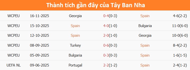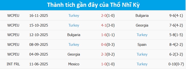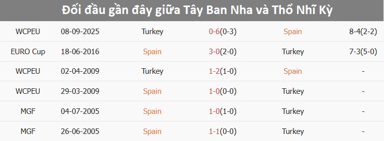 Tỷ lệ trận đấu: Tây Ban Nha toàn thắng Thổ Nhĩ Kỳ cả 3 cuộc đối đầu trước đó theo tỷ số châu Á. Tây Ban Nha cũng thắng 4/5 trận gần đây. Về phần mình, Thổ Nhĩ Kỳ thắng 2 và thua 2 trong 4 trận vừa qua.
