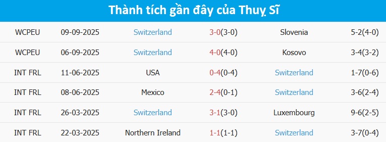 Tỷ lệ trận đấu: Thuỵ Điển thua cả 2 trận mới nhất theo tỷ số châu Á. Về phần mình, Thuỵ Sĩ toàn thắng 5 trận gần đây.