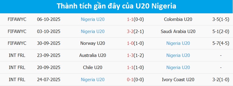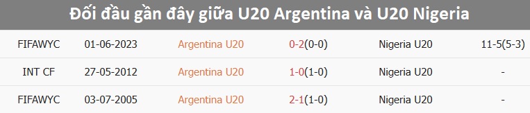Tỷ lệ trận đấu: U20 Argentina toàn thắng 2 trận gần đây theo tỷ số châu Á. Về phần mình, U20 Nigeria thắng 2 và thua 3 trong 5 trận vừa qua.