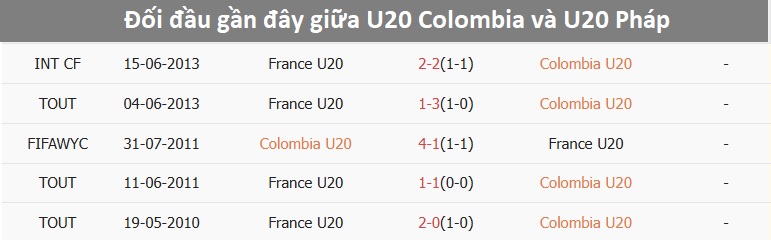 Tỷ lệ trận đấu: U20 Colombia thắng 2/3 trận gần đây theo tỷ số châu Á. Về phần mình, U20 Pháp chỉ thắng 1/5 trận từ đầu giải.