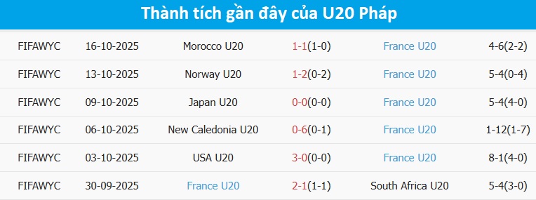 Tổng bàn thắng cả trận: 7/9 trận gần đây của U20 Colombia dưới mốc tổng bàn thắng, tương tự là 2/3 trận vừa qua của U20 Pháp.