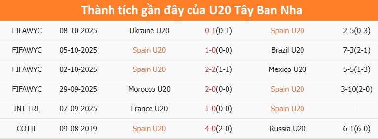 Tỷ lệ trận đấu: U20 Tây Ban Nha toàn thắng 2 vừa qua theo tỷ số châu Á. Về phần mình, U20 Colombia cũng thắng trận mới nhất.